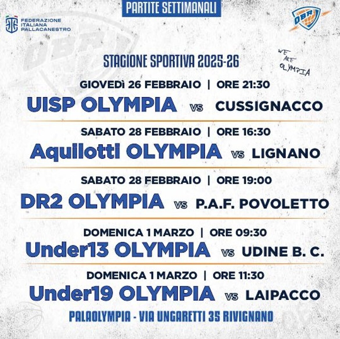AI BLOCCHI DI PARTENZA LA NUOVA STAGIONE SPORTIVA DELL'OLYMPIA BASKET!!!